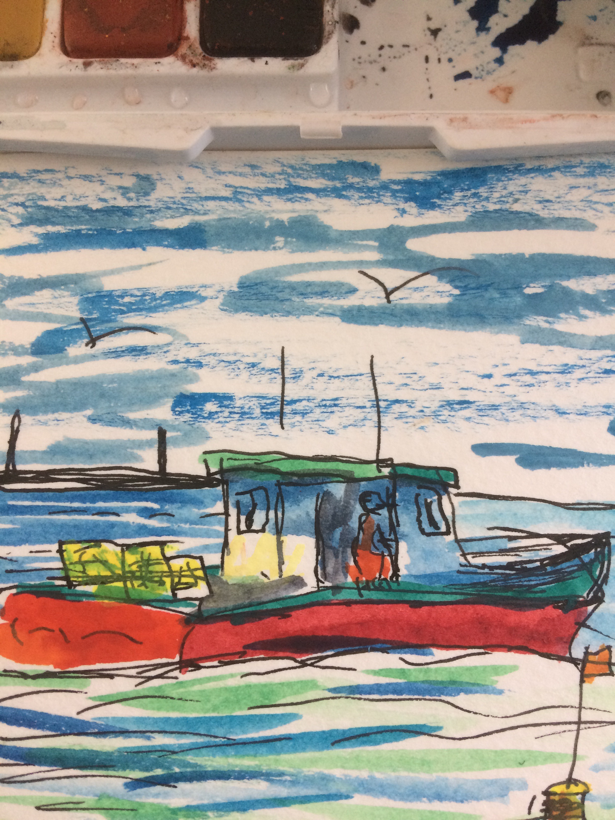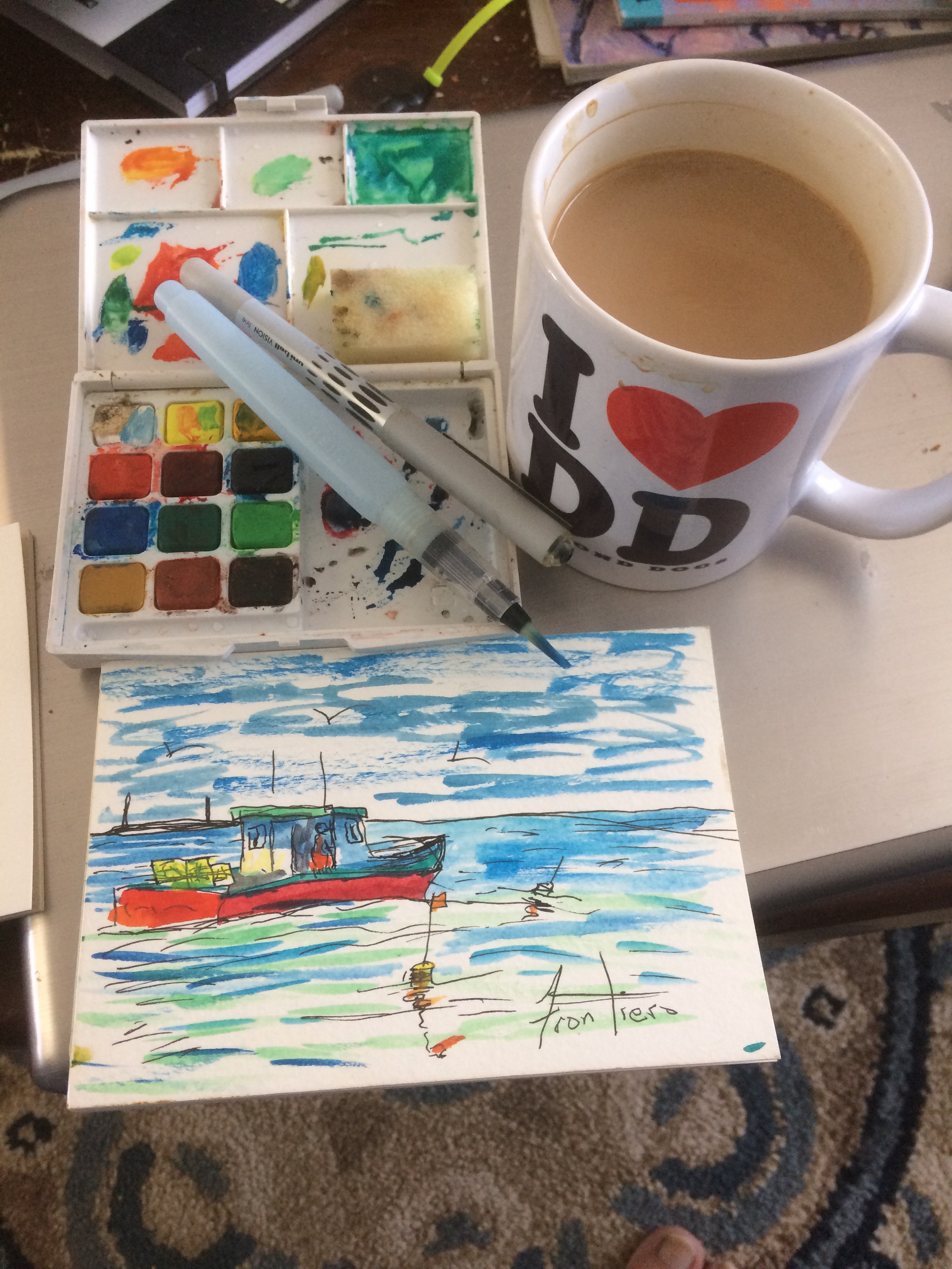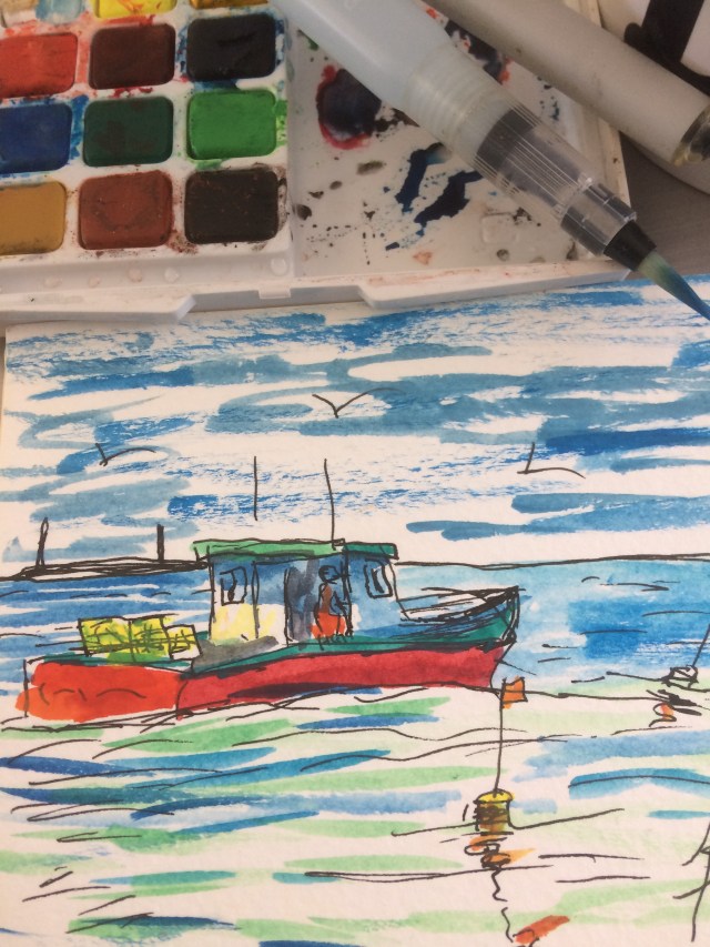 This is the first one. Pen and watercolor 4″x6″. 03/18/2017. About 20 minutes.